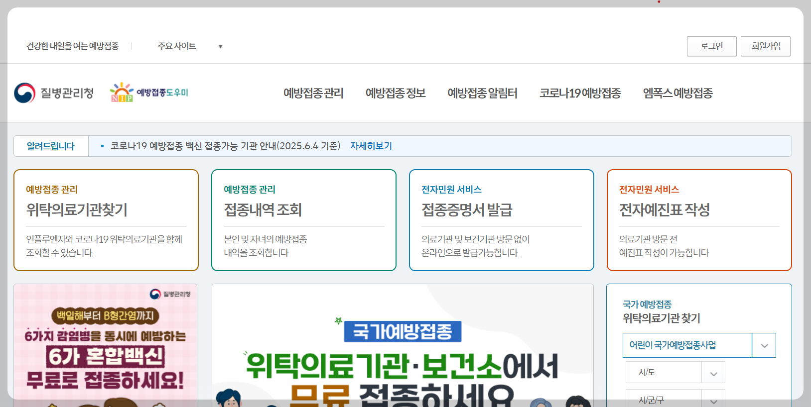 - 지정 의료기관: 질병관리청 예방접종도우미 사이트에서 확인 가능